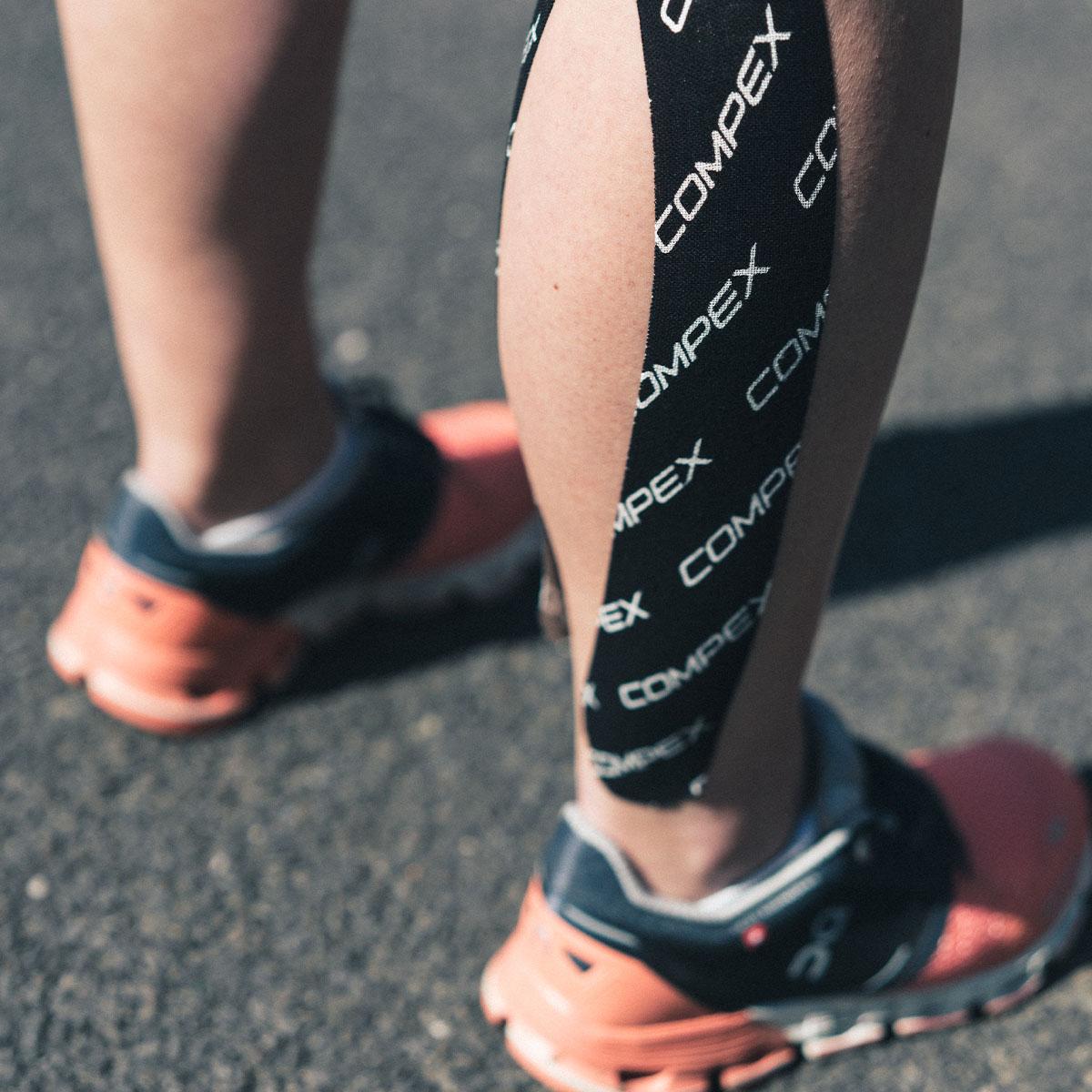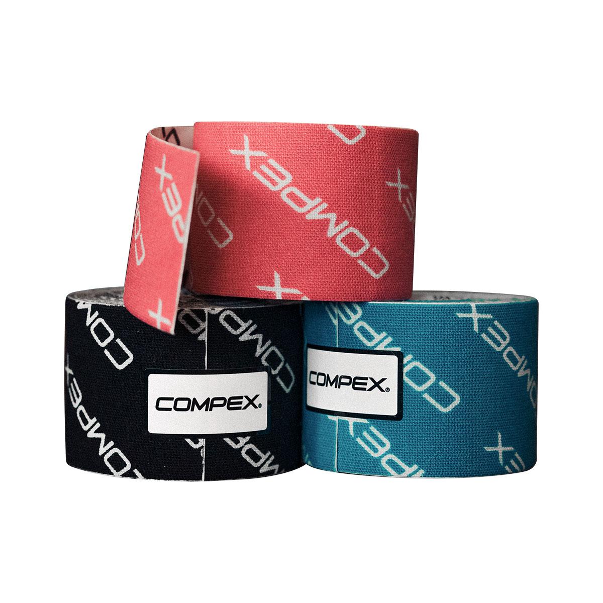 Compex運動肌腱貼緩解疼痛、增加血液循環並為關節和肌肉運動提供結構支撐。高品質棉膠帶具有丙烯酸粘合層,可以佩戴數天,不含乳膠且防水。