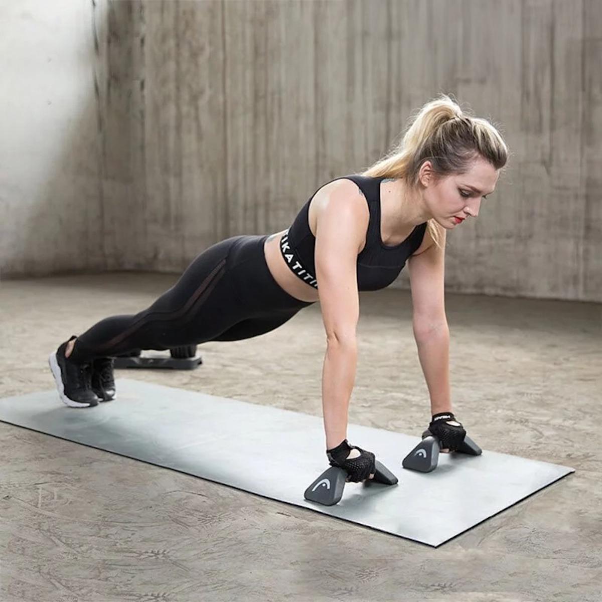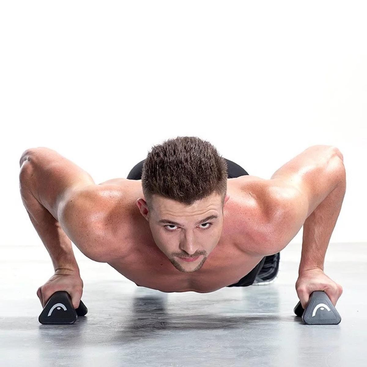 Head掌上壓啞鈴手握把有效減輕手腕壓力,提升訓練強度,結合伏地挺身與啞鈴訓練,全面增強效果。採用耐重高強度合金製成,外層浸塑包覆,觸感佳且握感舒適。磨砂紋路設計提供極佳防滑效果,讓訓練更安全穩定。