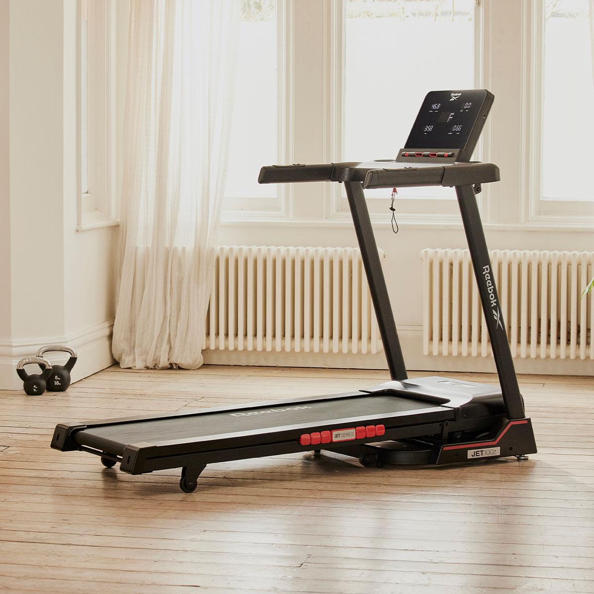 Reebok Jet 100z跑步機有24種預設運動程式,同時提供用家自訂設定,時間、距離及卡路里消耗目標皆可自由設定。運動期間可以放置電話或平板,亦可連接內置喇叭,便可一邊運動一邊聽音樂。