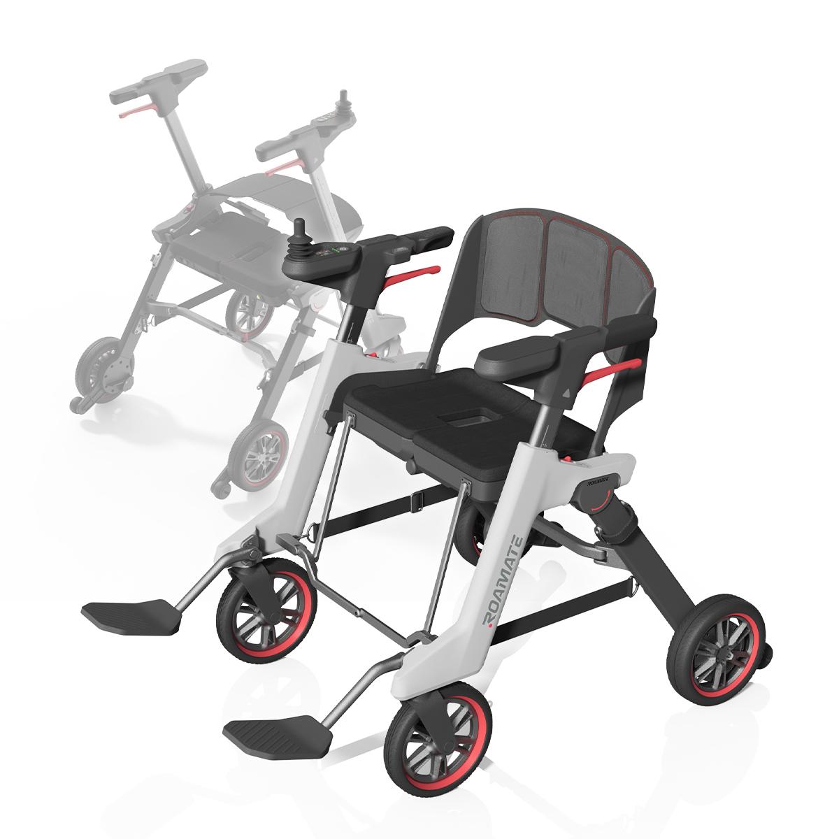 Roamate三合一電動輪椅 打破傳統既有印象,以未來感設計及創新功能,將助行器、電動輪椅及購物車三大模式集於一身。不論銀髮族、復康人士,還是追求便利行動嘅用家,都能享受更自由、更有型的生活方式。