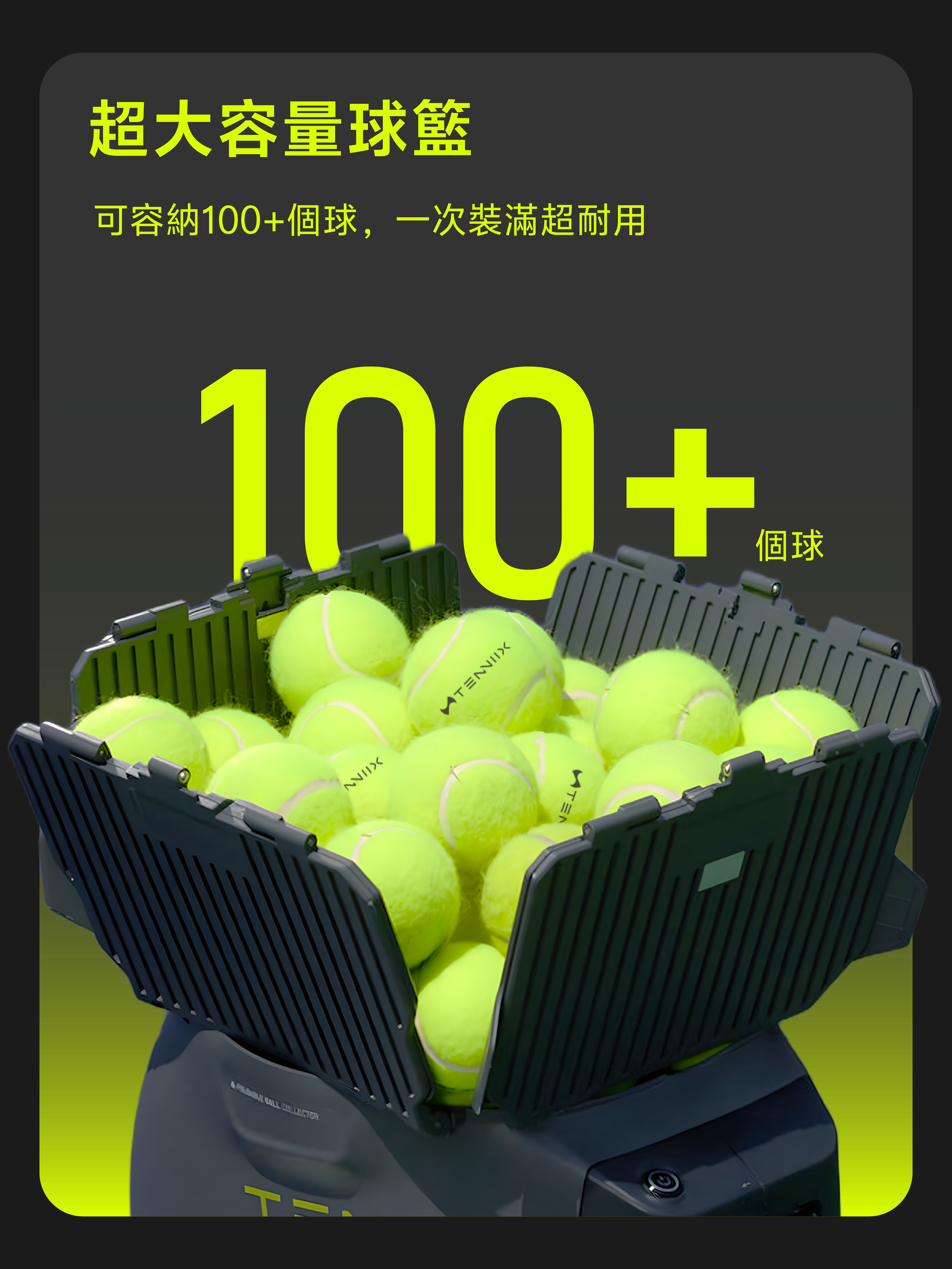 A: Tenniix 是您真正的訓練夥伴。它結合了人工智慧晶片、基於視覺的混合追蹤技術和語音控制,不僅能識別您的動作和位置,還能聆聽您的指令,即時思考,並根據您的 NTRP 等級和訓練目標調整每一次發球。告別固定或隨機的擊球!它將成為您最專業的網球教練和全天候的訓練拍檔。