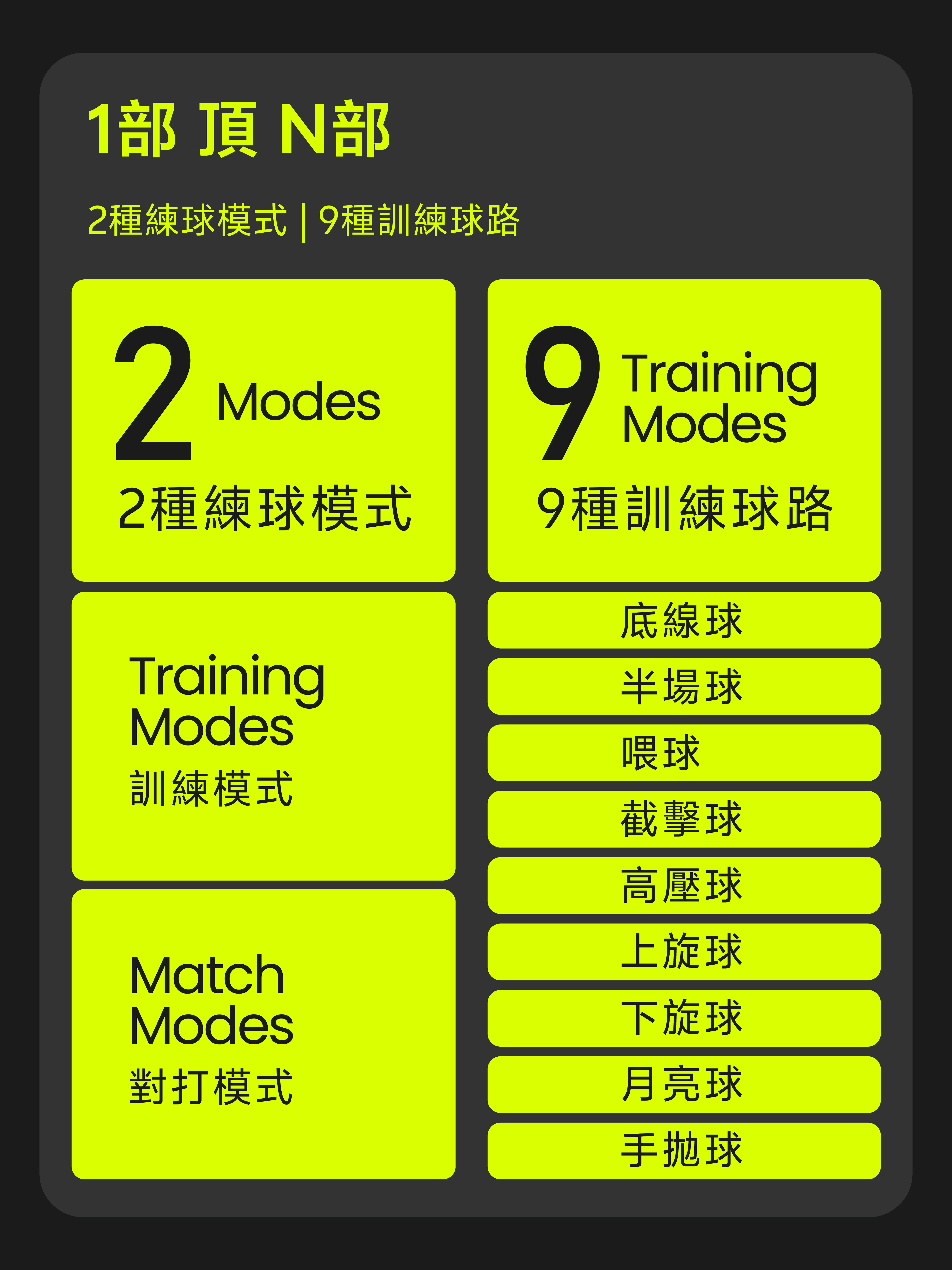 支援訓練模式、比賽模式、自訂模式三種模式,一指輕觸即可瞬間切換,讓你快速從基礎磨練轉入高強度模擬對抗,重新定義場上策略。