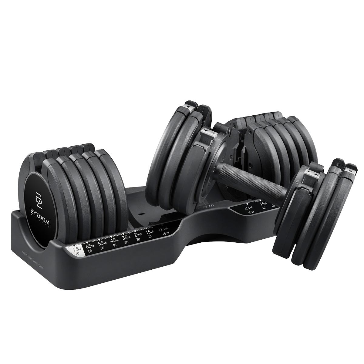 全新Byzoom Pure Series 75LB 可調式啞鈴 (一個),集21段重量(4.5-35KG)於一身,秒速變換理想重量,用家可依照不同訓練強度調整,進行多樣化訓練。一款追求極致美學的可調式啞鈴,採用美觀、耐看及時尚的設計,再配以超防滑金屬咬花手柄,手感舒適及其紋路亦防止滑手。附有專用收納底座,堅韌耐重,方便收納不佔空間。其設計亦針對減少配件轉換時的噪音,增加平穩度,讓用家更能專心投入及享受訓練過程。小巧設計,會隨重量而增加啞鈴長度,不受固定長度牽絆,便利性亦大大提高。