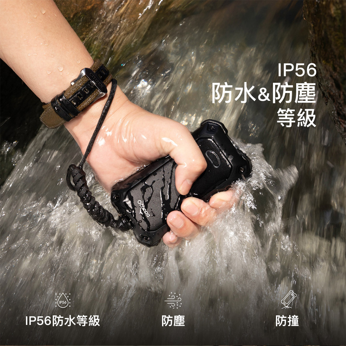 IP56 防水級別,防塵防撞,在戶外使用更安心。此外,它還附有電筒照明及掛繩功能,讓你在戶外帶它不用怕。
