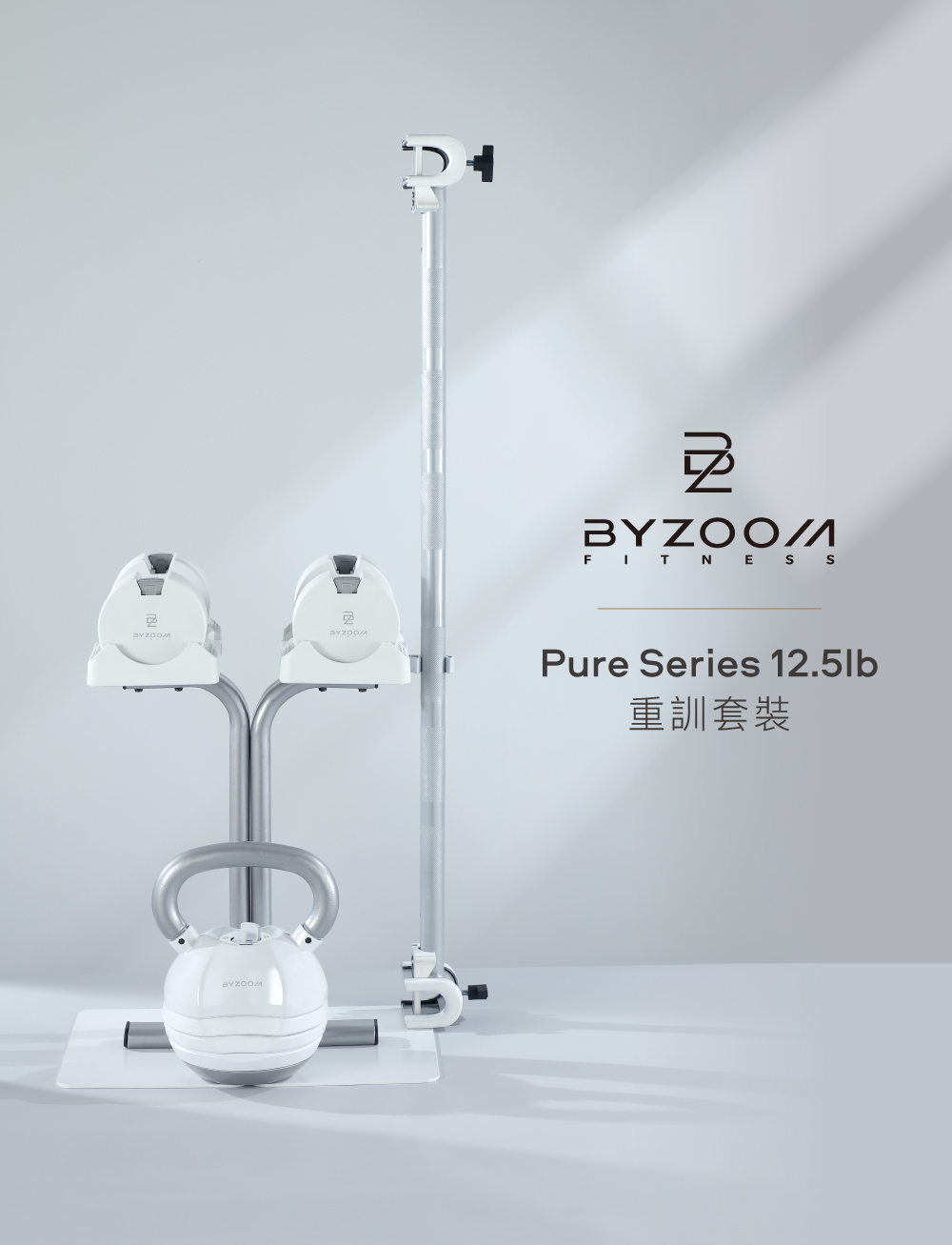全新Byzoom Pure Series 12.5lb 重訓套裝,一套滿足你全部重訓需要的套裝。套裝以白色為主,造型簡約時尚,而且小巧設計,不佔空間,方便收納。整個套裝包括: